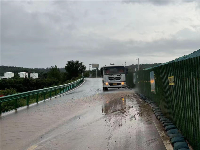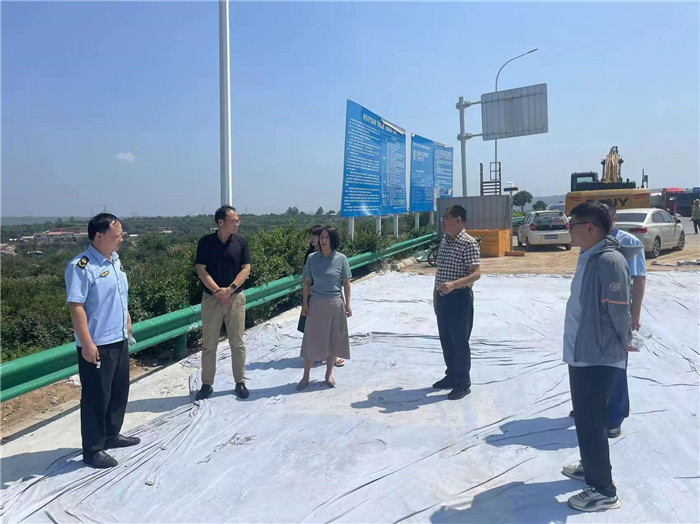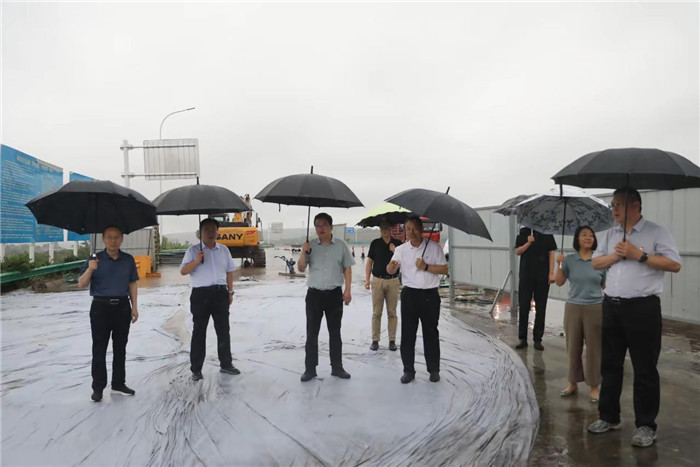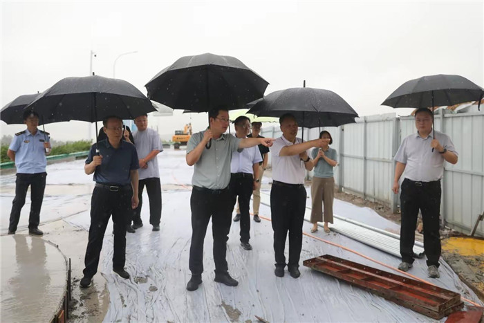 7月8日,副市長秦迎軍, 市政府辦公室副主任張法強(qiáng),市交通運(yùn)輸局副局長任江源,市公路中心黨委書記、主任周鵬,總工趙兵一行深入東環(huán)路3號(hào)支線項(xiàng)目一線,實(shí)地督導(dǎo)檢查防汛安全和道路保通保暢工作,認(rèn)真聽取現(xiàn)場(chǎng)負(fù)責(zé)同志的情況匯報(bào),詳細(xì)了解雨水天氣道路防汛安全、應(yīng)急保通及各項(xiàng)安全措施落實(shí)等情況,并就做好防汛備汛及安全保通等工作提出具體要求。昌通路橋總經(jīng)理趙鑫,副總經(jīng)理孫博陪同。隨后,趙總、孫總至南山大道引線項(xiàng)目現(xiàn)場(chǎng),實(shí)地查看雨水天氣道路通行及邊溝排水情況。