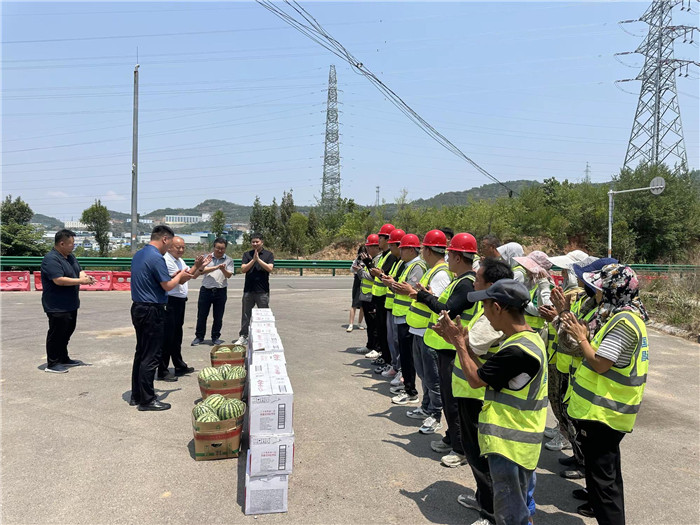 7月2日,路橋集團(tuán)黨委副書記、總經(jīng)理諶建鋒、總經(jīng)理助理李磊一行至昌通路橋310國道日常養(yǎng)護(hù)項(xiàng)目二工區(qū)進(jìn)行夏季一線“送清涼”慰問活動(dòng)。對(duì)一線員工的付出給予肯定,要求夏日炎熱,注意防暑降溫,保障安全。
