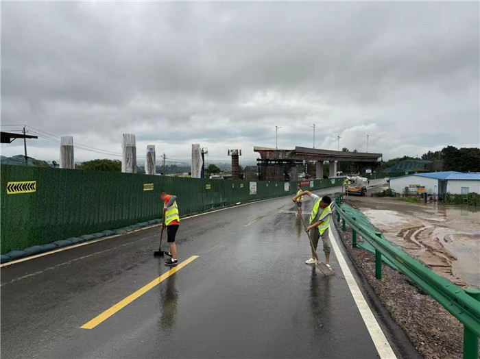 施工現(xiàn)場(chǎng)安全巡查;便道雨后沖洗路面浮泥、清除雜物,防止行車安全隱患。
