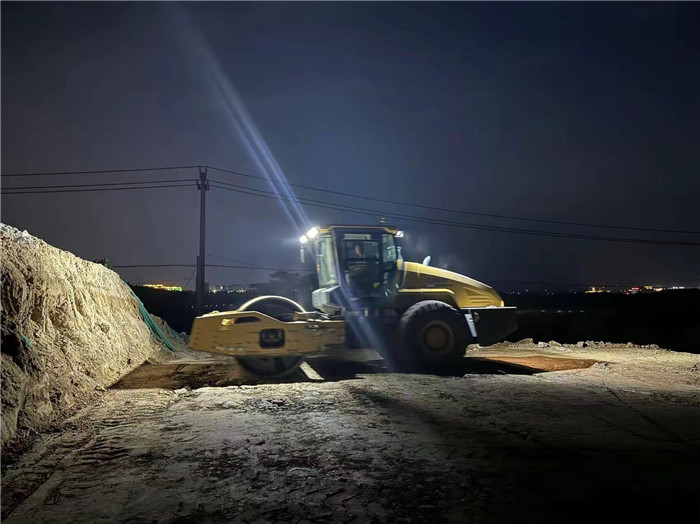 市區(qū)向6#臺(tái)背回填石方碾壓。