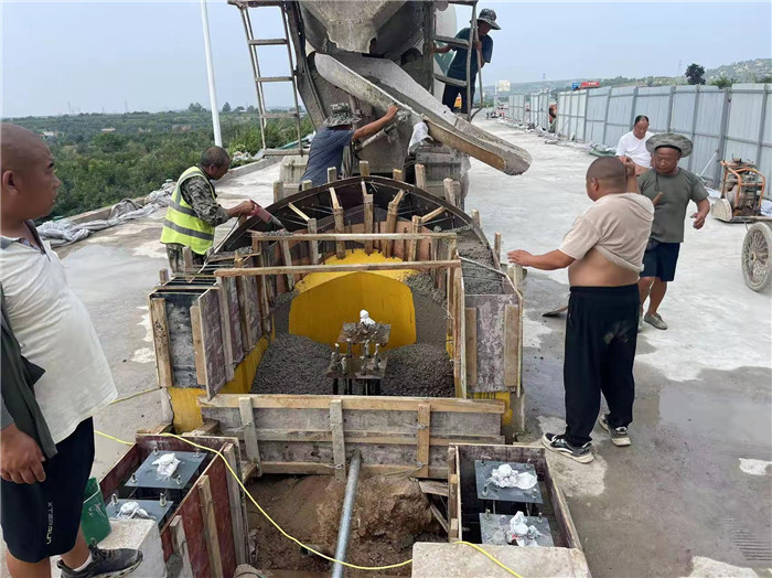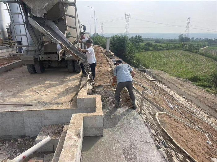 三門峽西收費(fèi)站防撞島、收費(fèi)道、路肩澆筑混凝土